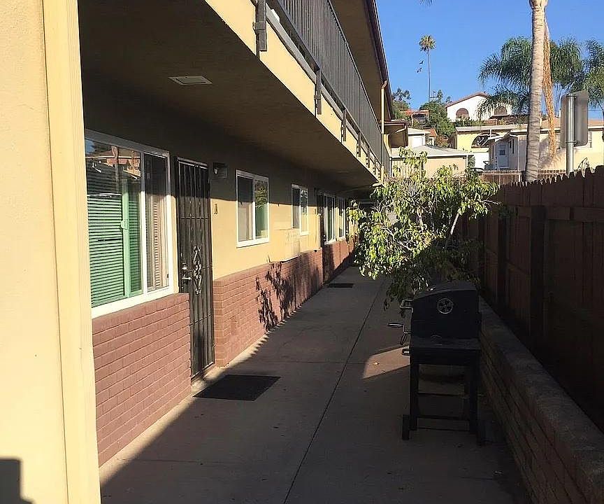 Welcome to Guava Manor located in the heart of La Mesa, where an upstairs 2-bedroom 725 sq ft apartment is now available. Dine ; shop ; explore La Mesa, voted one of the most walkable areas in San Diego county. Known for great outdoor activities like the Farmers Market, Antique Street Fair, Oktoberfest, and the Classic Car and Bike Show. Ample parking for this well-maintained property and unit. The two bedrooms have plenty of closet space with new carpet throughout. The kitchen and dining area features tiles flooring, newer cabinets with matching white appliances and granite countertops. The bathroom has tile flooring and surrounding tub/shower combo. Ceiling fans are in both bedrooms. There is an on-site laundry room with your own storage locker. Landlord pays for water, sewer, trash and gas, so you save money on utilities. Small, adult pest are allowed which can be one dog up to 20lbs. or up to 2 cats. No smoking allowed on the property. Amenities: -Granite counter tops -Tile flooring in kitchen, dining area and bathroom -Ceiling fans in bedrooms -Well maintained property -Matching white appliances -Large Closets -Garbage Disposal -Rent includes most utilities (Gas, trash, sewer, and water) -Ample natural lighting -On-site parking (one space included) -Nearby public transportation -Great access from main freeways -On-site laundry -Walkable district Owner pay for all utilities except electricity. Pets are allowed, no pet rent but a $200 pet deposit is required. Landlord pays for water, sewer, trash and gas, so you save money on utilities. No smoking allowed on the property. Rent includes most utilities (Gas, trash, sewer, and water). Owner pay for all utilities except electricity. Small, adult pest are allowed which can be one dog up to 20lbs. or up to 2 cats. There is no pet rent but a $200 pet deposit is required per pet.