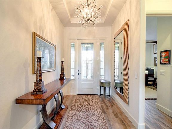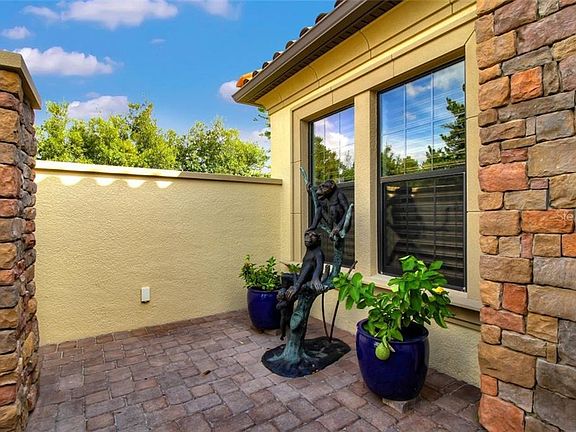 Come enjoy the luxury resort lifestyle that Esplanade Golf & Country Club offers! Bring your discriminating buyers that appreciate the attention to detail in this most popular Lazio model with water & golf course view. The stone elevation & gated court yard entrance opens to the large open great room plan with 3 brs, den & 3 baths. The gourmet kitchen equipped with a large island with quartz counters, includes upgraded lighting, cabinets with pull outs, stainless steel appliances, gas range & a Jenn-Air counter draw frig.The extended kitchen with desk area opens to the great rm with sliding doors flowing to the pool area. This meticulously maintained home has many high-end upgrades including upgraded wood plank tile thought out, tray ceilings, crown molding & 8 ft doors. The spacious master suite showcases a luxurious bathroom with a Toto electronic toilet, a lg walk-in shower with 2 shower heads, & a spacious walk-in closet with custom built-ins . The guest bedroom with en-suite bath has custom closets along with the other bedroom. Entertain on the extended screened lanai with a summer kitchen featuring an Alfresco grill, a TV, & a heated pool with a relaxing shelf and spa & extensive landscaping provides privacy. Upgrades: fresh exterior paint, a 3-car tandem garage with epoxy flooring, ss mop sink along with a side access door & radiant barrier. Plus, a seldom found fenced lighted Dog Run on the north side of this corner lot. Enjoy unlimited golf & all the resort style amenities here in Esplanade.