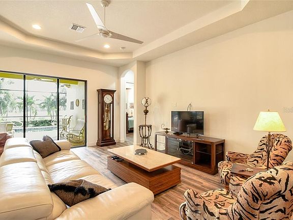 • Interior Features: Ceiling Fans(s), High Ceiling(s), Open Floorplan, Split Bedroom, Walk-In Closet(s), Thermostat, Kitchen/Family Room Combo, Living Room/Dining Room Combo, Window Treatments, In Wall Pest System, Tray Ceiling(s)