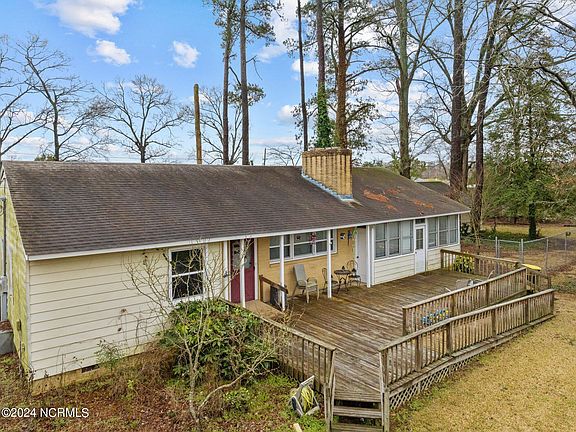 Seller Credit of $1500 now being offered!! Welcome Home! - This Charming, mid-century 3 bed, 1 and a half bath home boasts hard wood floors throughout, an updated kitchen with stainless steel appliances, newly carpeted sun-room, and oversized mud/laundry room in a convenient location to Winterville, Ayden, Greenville and Kinston! Situated in a quaint community, just off of HWY 11, the home sits on just under an acre of land. One of the most Notable features of the home is the gas log fireplace with timeless, neutral tone brick surround, original to the home's time period style. The property also offers a detached 1 car garage with an attached and updated flex/office space, fenced in rear yard and circle driveway. The front and back decks, offer accessibility to the home with ramps. Additional notable characteristics include updated electrical, cedar lined closets, replacement windows throughout the majority of the home (except sunroom), and all new 2 inch plantation blinds in the sun room. Schedule a tour to see this charmer today!