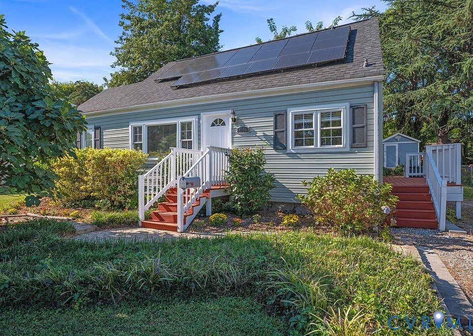 Welcome to this charming Cape-Cod-style home in the Kildare neighborhood of Richmond. Step inside to find a light-filled living room with warm wood floors, creating an inviting space to relax or entertain. Flowing seamlessly from the living room is the dining area, ideal for gatherings and everyday meals. The updated kitchen features modern finishes, ample cabinetry, and convenient access to the back deck, perfect for indoor-outdoor living. The first level includes a spacious bedroom with its own ensuite bath, providing comfort and privacy for guests or an ideal primary suite option. Upstairs, you’ll find two additional bedrooms and a full bathroom, offering flexible space for family, home office, or hobbies. Outdoors, the property truly shines with a large deck overlooking the lush backyard. A patio area provides an additional spot for entertaining, while two storage sheds offer plenty of room for tools, equipment, or hobbies. With solar panels, this home combines charm and efficiency, making it as practical as it is welcoming. Set in the established Kildare neighborhood, this home is just minutes from shopping, dining, parks, and commuter routes, offering both convenience and community. Don’t miss your chance to own a move-in ready home with updates, character, and space inside and out.