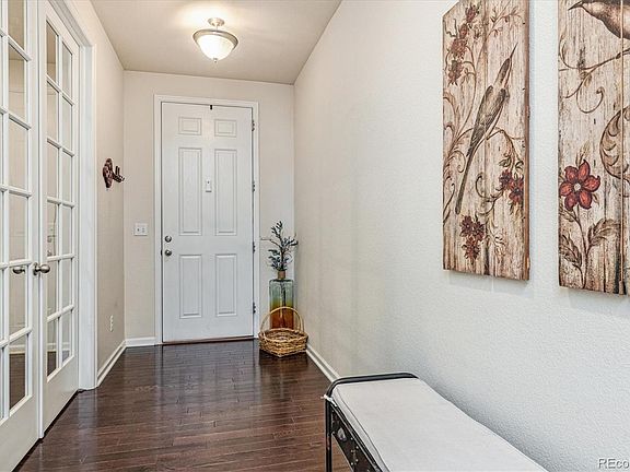 Beautiful Richmond American - Hemingway Model 5 bedroom home on a corner lot is steps from the neighborhood park. Main floor features include sprawling wood floors, 9 ft ceilings, abundant natural lighting and a large office with glass french doors. The living room is spacious and includes a gas fireplace with a tile wall and is wired for surround sound. The dining area leads to the gourmet kitchen featuring a large island, granite countertops, updated stainless steel appliances including gas range with hood, double oven, and large walk-in pantry. The upstairs features a large open loft area perfect for a playroom, crafts room, den, media area - the choice is yours! The primary suite is spacious but cozy and the primary 5 piece bathroom includes a double sink, soaking tub, walk-in shower and big walk-in closet. There are three additional bedrooms, a full bathroom with double sinks and a conveniently located laundry room with washer & dryer included. This large home features a built-in vacuum system through main and upper levels with extra attachments! The finished basement with 9' ceilings, boasts a great room that is wired for surround sound (wall mount tv included), 5th bedroom, 3/4 bathroom and large storage room. The fenced backyard is a great area to enjoy the awesome Colorado weather and the sprinkler system makes it an easier to maintain. The paver patio and basketball court will bring hours of fun and relaxation. The 3 car garage is an added bonus to house all of your cars and toys. Located in the Cherry Creek School District and Copperleaf Community, this home is close to parks, walking & biking trails, shopping, restaurants and more. Only one owner! Don't miss this amazing home!