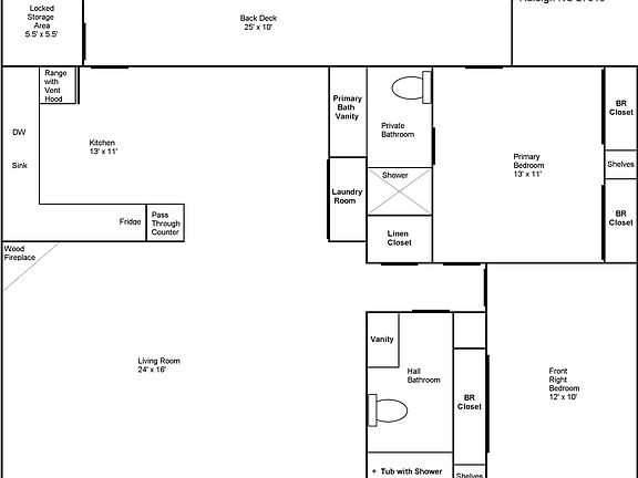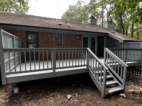 All Investors... Prominently situated in close proximity to shopping amenities, offering convenient access to I540, Triangle Town Center, and a mere 15-minute commute from downtown Raleigh, this charming residence boasts two first-floor bedrooms, and 2 full bathrooms. Noteworthy features include cathedral ceilings in both the master bedroom and the living room, the latter of which showcases a fireplace. The kitchen is generously appointed with ample cabinet space, while a spacious deck overlooks the verdant expanse of the backyard, providing an idyllic setting for gatherings and entertainment. This delightful home presents a unique opportunity not to be overlooked. No yard sign.