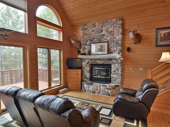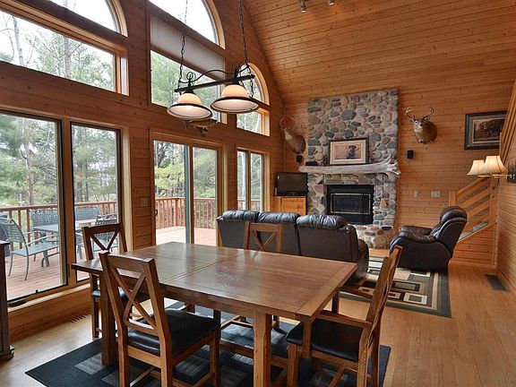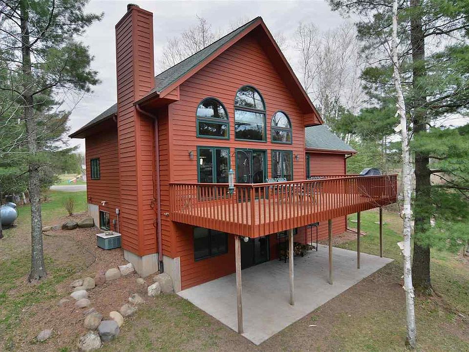 Tucked on a knoll amongst the hardwoods, evergreens and rolling prairie stands a 4 bedroom, 3 bath chalet. Featuring a loft master suite and second story deck. The main floor boasts hardwood floors, fieldstone wood burning fireplace and first floor laundry. The lower level walk out has a spacious family room, 2 bedrooms and bathroom. The large deck is perfect for entertaining family and friends and extends your living space. The well thought out landscaping with a fire pit is perfect for those cool summer nights. Close to both Cable & Drummond.