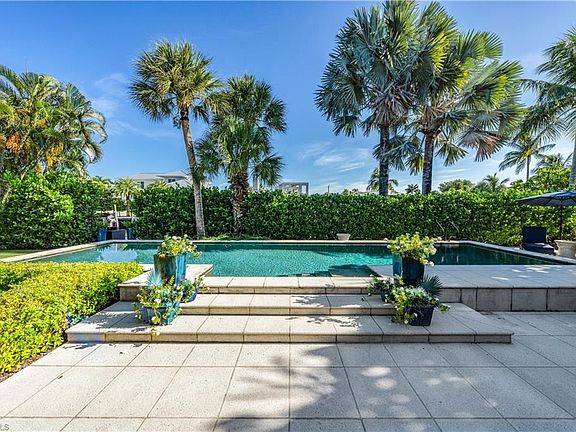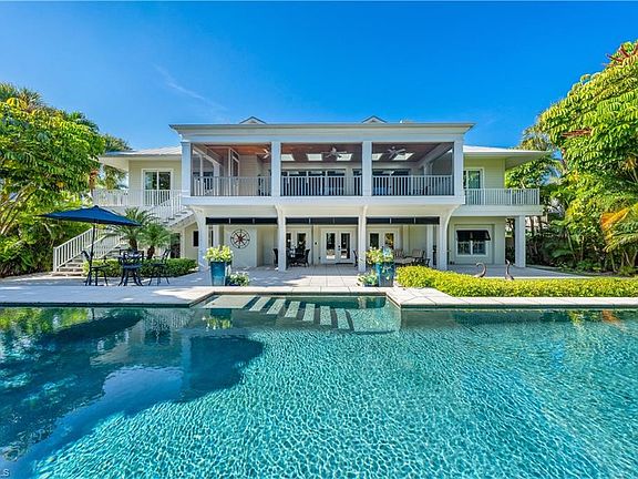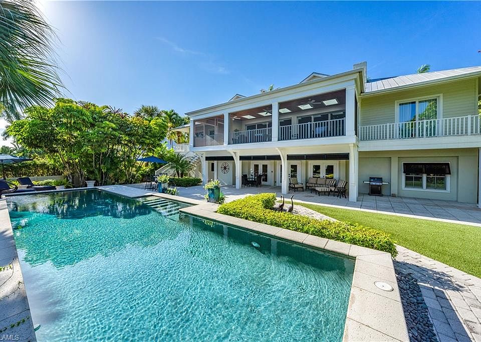 Discover the essence of waterfront luxury in this beautifully reimagined coastal home, ideally situated in the prestigious Aqualane Shores community. Just a short stroll from the vibrant 3rd Street district and the iconic Naples Pier, this 5-bedroom, 5.5-bath residence offers a seamless blend of modern elegance and relaxed coastal living. The lower level is designed for both comfort and entertainment, featuring a spacious lounge area with a flat-screen TV, a convenient kitchenette, a laundry room, and three inviting guest bedrooms, each with a queen bed, along with two stylish bathrooms. Upstairs, an open and airy floor plan showcases a sophisticated living and dining space, complemented by a state-of-the-art chef's kitchen with a gas range and high-end appliances. The luxurious primary suite offers a private retreat with a king bed, spa-like bath, oversized walk-in shower, freestanding soaking tub, and an adjacent office space. A secondary guest suite on this level includes twin beds and a private bath. Thoughtful details such as rich bamboo flooring, exquisite tile finishes, and exposed beam ceilings add to the home's charm. Step outside to embrace the Florida lifestyle whether lounging by the resort-style pool, unwinding on the covered wraparound balcony with tranquil water views, or setting off from your private dock for a day on the Gulf. This exceptional Naples getaway is ready to welcome you! January and April 2026 are available at $40,000/month, May through October at $25,000/month, November at $30,000/month, and December at $35,000/month.