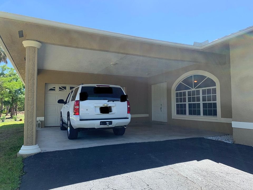 NOW AVAILABLE FOR RENT! Beautiful single family 1975 sq.ft. split floor plan home with a fenced-in backyard on a spacious 2.5 acre lot on a dead end quiet street. Enjoy the benefits of an attached 2 car garage along with an attached Porte-Cochere to use as you desire. The main house includes a master suite, two bedrooms for your in-laws or guests and a bonus/office room; Furthermore, a formal living and dining room, family room, and an enclosed air conditioned lanai - perfect for entertaining. Upgrades Include: Reverse Osmosis throughout the entire home, a recently Remodeled Master Bathroom with bath tub & shower. Located minutes from a community park, schools, and shopping. PLEASE NOTE: Renters will possess full use of the Main home only. First Month, Last Month, and Security Deposit required. Available immediately. Lease required. Background and credit check required Water maintenance is covered by owner. Electric is covered by tenant. Large backyard fenced in. Smoking is allowed outside of house Room for 4 cars. 2 in garage 2 under covering