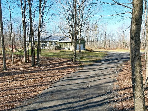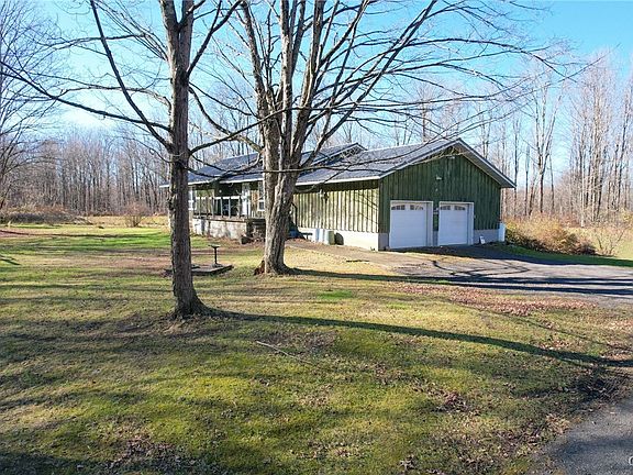 This spacious ranch home offers 3+ beds, 2 baths and sits on +/- 46.80 private acres!  Drive in through  the peaceful driveway where you will find this home tucked off the road.  Enter through the front door into the large living room area, or choose to park in the attached garage and enter through the kitchen.  Downstairs you will find a partially finished walkout basement with a coal stove and several additional rooms for living space.  There is also a roughed-in bath.  Choose to heat with the new propane furnace or enjoy the coziness of the centrally located woodstove. In addition to the 2 car attached garage there is also a spacious two-story, 4 car garage!  Both garages have power and plenty of room for storage and to tinker.  Bring all the toys because the recreational activities on this large parcel are endless!  Enjoy hunting, hiking, snowshoeing and snowmobile/ATVing.  Located just minutes to Happy Valley State Forest, the great Salmon River, and the Redfield Reservoir the opportunities are endless.