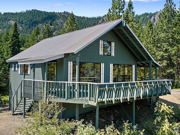 Cabin with magnificent Upper County and Stuart Mountain Range views. Cabin has wrap around deck with wood craftsman interior features plus large loft for extra sleeping space. Tiled counter tops, hardwood floors plus wall to wall carpet. Large sleeping loft. All furnishings stay if desired by buyer. Large 31'x 50' detached garage/shop with 20'x31' upper level plus an attached 12' x 31' mechanical shop for 2,528 sq ft. Property has a Gazebo with fireplace close to small pond. Large grassy open area for RV parking or camping. A 2nd detached garage 12' x 31' and Garden Shed. Property has small un-named creek running through it that also feeds small pond.
