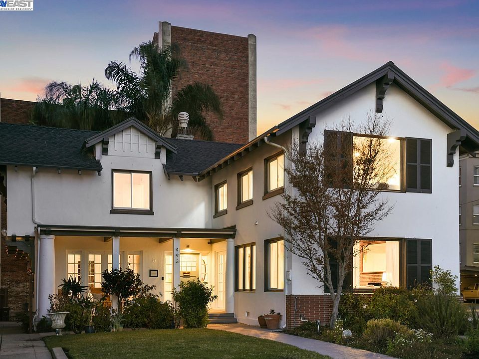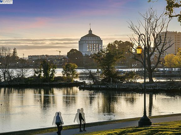 Just yards from the shore of Lake Merritt, 491-493 Bellevue Avenue is a rare 5BD/3BA duplex, completely remodeled, with a street-level 2BD/1BA home and a second 3BD/2BA home above. Both homes feature light-filled rooms, hardwood floors, newly remodeled kitchens with stone countertops and new appliances, updated modern baths, and gorgeous views of the lake. The two homes share an expansive rear patio - a tranquil space perfect for al fresco entertaining, shaded by mature citrus and magnolia trees with plenty of space for multiple seating areas. The home includes gated off-street tandem parking and a large basement laundry room with a washer and dryer. 493 Bellevue is anchored by a unique stacked stone fireplace, and the gracious open living room features newly-refinished hardwood floors and a high, beamed ceiling with recessed lights. The upstairs home, 491 Bellevue has a modern, open feel with Art Deco touches. The spacious primary bedroom overlooks the lake, and is adjacent to a second bedroom and shared bath. A third bedroom is adjacent to a newly remodeled bath with dual sinks and tiled shower over tub. Explore the possibilities as a duplex, or convert back to a single family home.