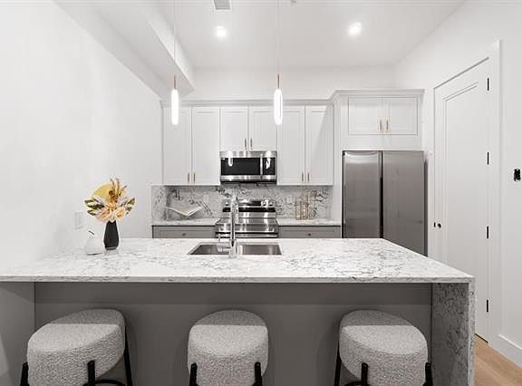 Welcome to the epitome of modern living at 491 Broadway, the latest jewel in the heart of thriving Bayonne, NJ! Sophisticated and meticulously designed apartments featuring 2 bedrooms and 2 full bathrooms. The kitchen features gorgeous quartz waterfall countertops. The elegant design seamlessly blends with high-end stainless-steel appliances, promising a culinary experience that's both stylish and durable. The bathrooms feature floor-to-ceiling tiles and Kohler gold faucets and shower trim, adding a touch of luxury to your daily routine. This unit boasts of natural light, central heating/cooling, 10 ft ceilings and 8 ft millwork doors. The multiple custom closets provide plenty of storage space for all your belongings. This building is equipped with a common laundry room, and a fantastic intercom system allowing tenants to provide remote access through the mobile app. 491 is located just 3 blocks from light rail station, and one of the most sought-after blocks on Broadway, next to convenient shopping, excellent restaurants, and great bars! Be a part of this unique new construction at 491 Broadway where every detail speaks of comfort, luxury, and modern living with timeless elegance. Multiple units available, schedule a tour today!