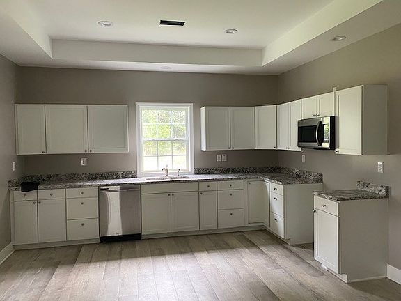For those wanting privacy, this is it. House sits amid rolling wooded acreage, down a long private road. 9' ceilings and Granite countertops throughout. Open floor plan with split bedrooms. Oversized one-car garage with 10' tall door. Large laundry room with granite table. Upgraded tile baths. Large covered front porch. Finally a new house with private acreage.