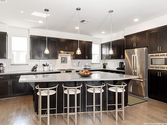 LIKE NEW - Open and spacious floor plan with 3 levels - Front porch plus 2 balconies - 1 bedroom and bath on lower level - Hardwood Floors - Chef's Gourmet Kitchen - Master Suite - Jack and Jill Bedroom and Bath - 2 car garage - ADT Security System - Leased - Views of Harbor and Jack London Square - Urban Village in the heart of the Bay Area - Alameda / Marina location - steps to shopping / stores / restaurants and minutes to Oakland and San Francisco via Ferry , SF Express Bus and Bart Shuttle.