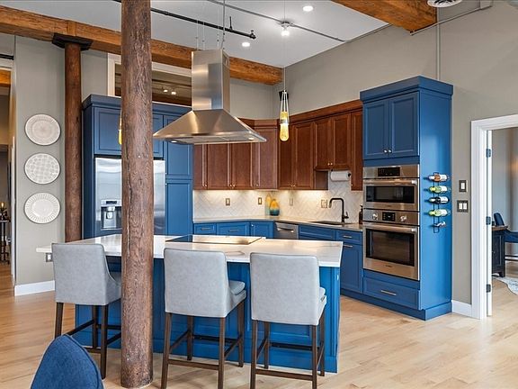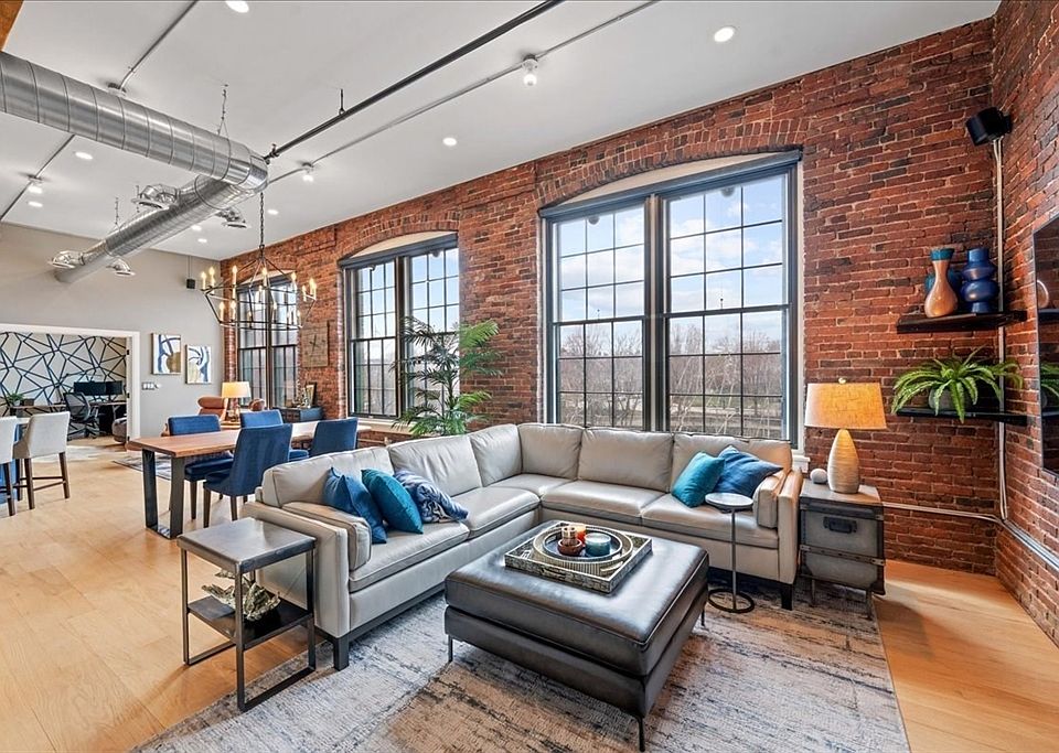 Professionally designed and fully furnished loft in Lowell’s vibrant mill district. Features 13-foot ceilings, a 50-foot exposed brick wall with four oversized double windows, white oak flooring, and exposed beams. Stunning kitchen with oversized island, quartz countertops, Bosch appliances, induction cooktop, premium cabinetry, and layered cabinet lighting. Spa-like bathrooms with tiled showers, premium fixtures, and whirlpool tub in main. Large den/office, walk-in pantry, and custom main closet. French doors to main and den; barn doors conceal laundry nook. Smart lighting, 5-room Sonos sound system, and powered custom shades throughout. No shared walls for added privacy. Ample parking via back stairwell. Easy access to commuter rail, I-495, and Route 3. Offered fully furnished and equipped, just move in and enjoy!
