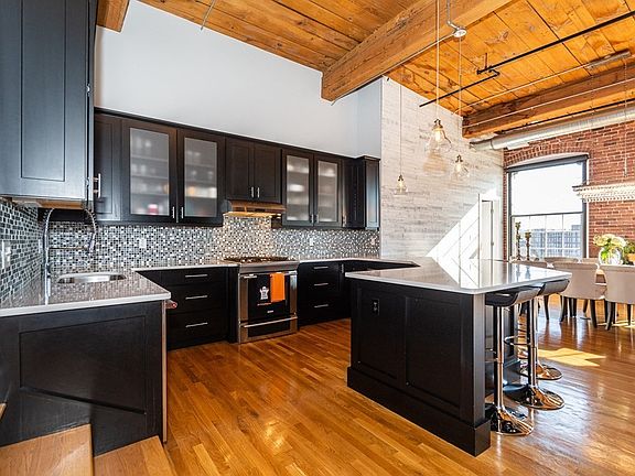 Introducing an exquisite and exceptionally rare 3-bedroom Penthouse Loft with unmatched city vistas. This luxurious loft caters to the discerning buyer seeking exceptional charm, impeccable craftsmanship, and an expansive open layout. The chef's quality kitchen is a masterpiece, featuring top-of-the-line custom cabinetry, stainless steel appliances, and high-end quartz countertops. Throughout the unit, you'll find stunning tile and hardwood flooring. An abundance of natural sunlight pours through a row of massive windows, offering picturesque views of the tranquil canal and the city beyond. In the winter, a custom gas built-in fireplace provides warmth and comfort. Unique elements like timber beamed 14' ceilings and exposed rustic brick add character and allure. Conveniently situated just minutes away from Shops, Restaurants, the Lowell Commuter Rail, and UMass Lowell, this property is a rare find not to be missed. Don't let this stunning property pass you by!