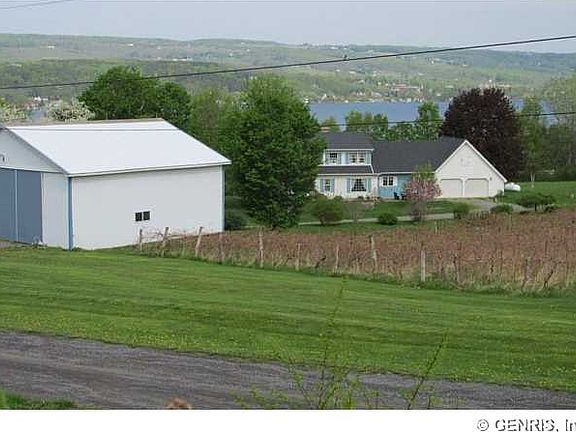 Wonderful Keuka Lake view 3 bedroom 2 bath colonial with HUGE potential in the heart of Keuka's winecountry! Scenic rolling 10 plus acre lot located off the eastern shores of Keuka Lake, you have to see it. Selectively cut trees to really OPEN that view ! 2 car attached garage with 2 additional outbuildings. Partially insulated polebarn with poured floor & electric. Natural wood flooring throughout and gas fireplace in living room. Full foundation with wood burning fireplace. Existing lakeview 3 acre vineyard: concord, niagara, fredonia,& sheridan vines and shop create winery possibilities.