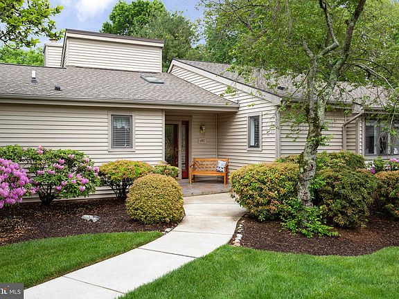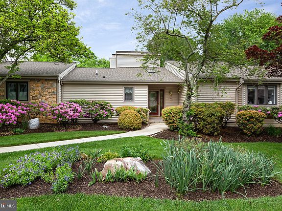 Welcome to 491 Eaton Way — a sunny 2-bedroom, 2-bath Goshen model in Hershey’s Mill, one of Chester County’s most sought-after 55+ communities. Tucked away on a quaint cul-de-sac in desirable Eaton Village, this home offers an ideal blend of charm and privacy. A short, level walk to the custom front door, this home is as elegant as it is accessible. The floor plan is open, creating an airy and sun-drenched atmosphere which follows you through every room. The home’s true standout feature is the setting: with serene views of the Hershey’s Mill Golf Course from your private deck. As you approach the cul-de-sac, you’ll appreciate the availability of guest parking near the home. Enter the front door, complimented by sidelights, and take in the cheerful foyer, with fresh paint and gleaming hardwood floors. The living room boasts a cathedral ceiling with a skylight and a fireplace, and flows well into the formal dining room. The spacious, eat-in kitchen includes plenty of counter and cabinet space as well as a breakfast nook, which is framed by sliders to the private deck. The perfect place to enjoy your morning cup of coffee, the deck— shaded by an awning— is ideally positioned to provide views of the Hershey’s Mill golf course and the attractively landscaped yard. The multitude of windows mean great views of your setting in every room. The home has dual primary suites, each with their own en suite bathroom: an ideal layout, especially for those who hope to host friends and family. The fully finished basement downstairs provides plenty of extra living and storage space. Ideally located nearby the boroughs of West Chester and Malvern, Hershey’s Mill provides a location convenient to the Main Line while still maintaining the atmosphere of a private, close-knit community. With the Malvern train station nearby, commuting into Center City Philadelphia is a breeze. Experience low-maintenance, blissful living with amenities that include a Community Center, library, pool, tennis courts, pickleball, wood shop, walking trails, and, of course, the nearby golf course and clubhouse. A golf club membership is available for an additional fee. Come visit, and discover what makes Hershey’s Mill so popular!