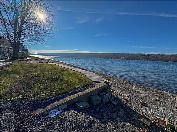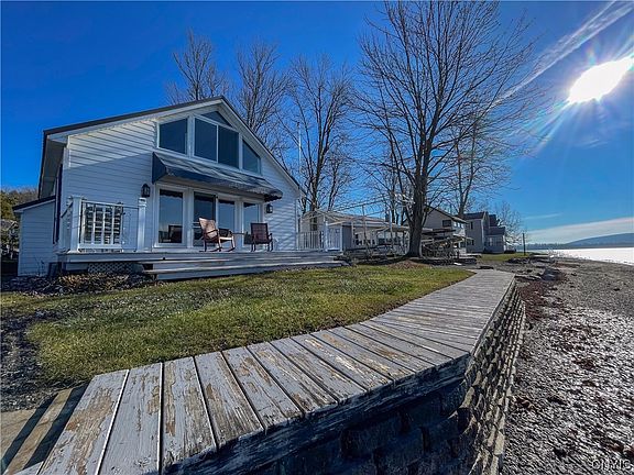 This stunning property on Owasco Lake offers a captivating experience with its 50 feet of lake frontage and breathtaking views. With 3 bedrooms and 3.5 baths, this recently remodeled home provides modern comfort and style. The in-floor radiant heat ensures warmth throughout, while the private boat launch allows for convenient lake access. You will enjoy immediate lake views the minute you enter the main area of the home with the tranquil feeling of floating on the lake offering a truly serene atmosphere. The home also offers a first floor master suite along with 2 bedrooms on the second level and a bonus room off of the garage inclusive of a full bathroom. In addition to this exceptional property, there is a common area of 5.9 manicured acres to utilize and enjoy for endless activity directly across from the home. Don't miss out on this one! Set up a showing today.