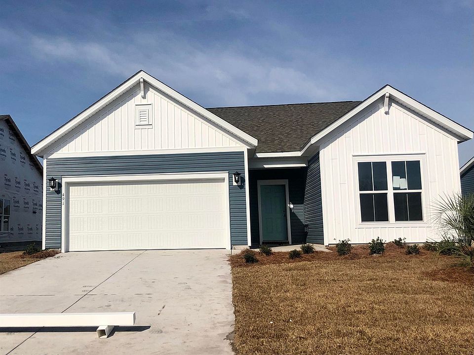 The Savannah house plan features 1-story living with 3 bedrooms, a dining room or study, 2 bathrooms, and a 2-car garage space. Your extended foyer provides an impressive area in which to welcome your guests and friends. Your new kitchen opens directly to the great room so you can prepare meals while catching up on the family's day or entertaining friends. The luxury kitchen features a granite countertop, stainless steel gas range, dishwasher, and microwave all included options in Sunset Landing. Your primary bedroom is secluded at the back of the home for your privacy in mind. Add an optional second level for a game room, loft, fourth bedroom, and full bath, ideal for guests and family. The price also includes Mohawk ReVWood plank flooring, carpet in bedrooms, and beautiful vinyl flooring in all bathrooms. All Homes in Sunset Landing feature a tankless water heater. Pictures are from previous similar Model Homes. All homes in Sunset Landing are 100% Energy Star Certified, tested, and rated by an independent 3rd party resulting in more comfort and lower cost of utility bills! Surrounded by a perimeter of wetland treeline, Sunset Landing is a natural gas community showcasing a brand-new series of single-family homes. In a small, intimate neighborhood consisting of only 193 homes, residents will have access to an on-site clubhouse, pool, sidewalks, and weekly trash and bi-weekly recycling collection. Sunset Landing is located less than 1 mile from Highway 31, providing quick and convenient access to navigate the entire coastline. Located within the fishing and boating town of Little River, South Carolina, this area is outside of the hustle and bustle of Myrtle Beach! A laid-back atmosphere with waterfront dining, boutique-style shopping, numerous marinas, and championship golf courses are all within minutes from Sunset Landing! Come explore today! All pictures shown are from a previous model Home.