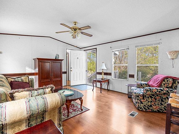 This home is in a PRIME location! ONLY 5 MILES FROM THE BEACH, this 2 bedroom, 2 bath, mostly furnished mobile home on leased land offers the perfect blend of comfort, convenience, and beach living. Schools, shopping, restaurants, medical facilities are all within 2 miles, yet the location makes you feel tucked away from it all. Newer stainless appliances, exterior storage building and washer and dryer convey. The screen covered back patio provides for extra space to relax and enjoy a cup of coffee or a meal. There is more than ample kitchen cabinet space and interior closet space too. There is even a gated community boat/trailer storage area available for a small monthly fee pending availability. Don't miss your chance to experience the ultimate beach lifestyle – schedule your showing today and make this charming mobile home your own!