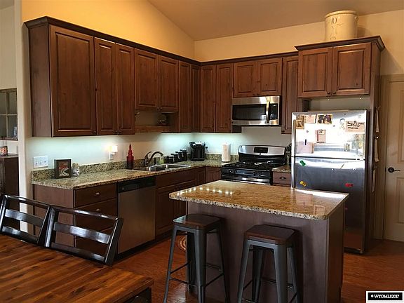 Country property on 4.7 acres of land. Ranch style with open floor plan. Kitchen has granite counter tops, stainless steel appliances and hard wood floors. Master bedroom suite with a walk in closet and master bath. Two car attached garage with small shop area and a large separate shop. Wonderful mountain view and horses allowed. Just minutes from town. This property is listed for under the recent appraised value.