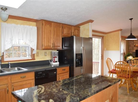 Large, Open Floor Plan, Ranch home, on a full partially finished walkout basement. Kitchen has numerous custom cabinets, a granite countertop island, pantry and separate dining room. Family room has a beautiful wood burning fireplace and wood flooring. Master bedroom suite has his and her closets, double sinks, soaker tub and separate shower. This home has main floor laundry, all new flooring, vaulted ceilings, 6 panel doors, tilt in windows, skylights, and all appliances included and most of the walls have been replaced with drywall. The walkout basement has a large workshop area, 2 finished rooms, storage area, and rough-in for bathroom. There is Plenty of space for everyone on this quiet and secluded 4.6 acres/corner lot with circle driveway
