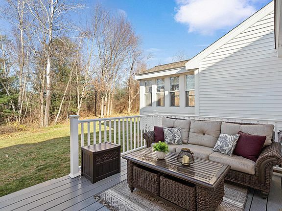 Bright and Airy End Unit Condo with Stunning Features! Experience a low-maintenance lifestyle in this beautifully updated single-level condo. This sun-filled end unit is the only one in the development with an oversized, brand-new composite deck overlooking a serene wooded conservation area—perfect for relaxing or entertaining. Step into the open-concept living space featuring a cathedral ceiling and durable Pergo Outlast flooring. The recently remodeled kitchen is a showstopper, with granite countertops, a subway tile backsplash, and fully-applianced convenience, including a gas stove. The spacious primary bedroom offers peaceful wooded views, while the bathroom boasts a large walk-in shower and tile flooring. This condo is equipped with central air, natural gas heat and hot water, and includes a washer and dryer. Storage is abundant with large walk-in closets and additional attic space. Located in a development with a flexible 80/20 rule, allowing 20% of occupants to be aged 21-55 if the 55+ occupancy threshold is met (currently offering plenty of opportunity). Rentals are allowed! Fantastic commuter location just moments from I-93, 2 min to bus station, close to great shopping, 15 min to Tuscan Salem, 15 min to Bedford, 45 min to the Seacoast, Boston, & Mountains! Walking distance to rail trail. Don’t miss this chance to own a rare gem in sought-after Cohas Landing, Londonderry NH's Premier Adult Community!