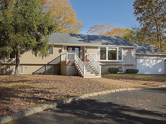contact Michelle @631-860-3221~ Completely redone beautiful home that sits back on a massive 1.25 acre park-like property. Upon entering this home, the open floor plan with cathedral ceilings greets you with an inviting atmosphere great for entertaining! Large eat in kitchen has custom designed cabinets with granite countertops, oversized stainless steel sink, stainless steel appliances, bar sink, wine fridge and bar like seating. Hardwood floors and recessed lighting throughout. This 4 Bedroom 3 Full Bath home which also includes an in-law suite/apartment is impressive. The elegant Dining room has french doors that opens up to wrap around deck to view the vast property. The master suite offers a relaxing retreat with a master bath jacuzzi. Large unfinished basement with outside entrances. It also features a 1.5 car attached garage with plenty of storage above, a circular driveway and plenty of parking space. Additional amenities include central A/C, hard wired fire alarm. A truly must see!