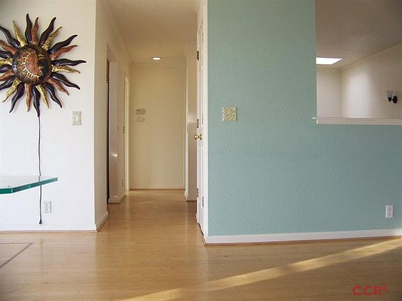 Beautiful Ocean Views from this 3 bedroom 2 full bathroom property with over 1600 square feet of living space. Wood and tile flooring throughout. Five surround sound speakers are wired into the living room walls. All counters are tiled as well. All upstairs windows that face west have impressive ocean views-( including master bedroom)-. The upstairs south/ west facing deck that is off of the dinning area also offers ocean views. Gas log fireplace in the living room with wall switch for on and off. Open floor plan. Skylight at the top of the stairway. Kitchen window over the sink looks out to the ocean. Kitchen also has tract lighting, a pantry, breakfast bar/ work counter, and a south facing wall that is open to the dining room. Recessed lighting is scattered throughout the interior.. Double car garage with opener. Short distance from Del Mar Park and the Ocean. Shows well..