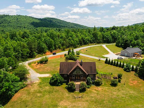 Welcome to your dream home with breathtaking 180-degree mountain views in Nelson County! This custom-built beauty is just minutes from the renowned vineyard and brewery trail and has thoughtful, mature landscaping including fruit trees, a fenced in raised garden bed and an oversized shed. Featuring three spacious bedrooms and a large finished bonus room, this home is designed for comfort and style. Step into the first floor, where you'll be greeted by elegant cherry hardwood floors, soaring vaulted ceilings, and a cozy wood-burning fireplace in the great room. The primary suite boasts a generous walk-in closet, while a second bedroom and full bathroom offer additional convenience. Enjoy serene mornings and evenings on the expansive back deck, soaking in the stunning mountain views. Upstairs, the open layout provides a perfect overlook to the great room below. Discover a third bedroom, another full bathroom, and a versatile finished bonus room with a closet and ample storage. This mountain oasis is perfectly situated just 45 minutes south of Charlottesville and 40 minutes north of Lynchburg, making it an ideal retreat with easy access to city amenities. Come and experience the tranquility and beauty of this remarkable home!