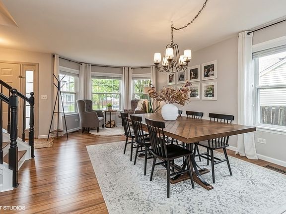 Modern creative touches make the interior of this home truly a one-of-a-kind. Fantastic location with fenced backyard bordering the Romeoville Municipal Complex. No rear neighbors offers privacy plus easy access to walking trails and parks. PLAINFIELD schools. 4 bedrooms 2.5 baths. Finished Basement with 4th Bedroom/Office. Bath with Shower ideal for separate living and/or work spaces or your typical rec room hangout. Bamboo Hardwood flows thru the entire main level. Updated kitchen with open shelving and neutral subway tile. Check out the custom built-ins in the family room with accent wall. Dont miss the convenient half bath on the main level. Primary bedroom has another unique accent wall, great windows and walk-in closet. The shared bath was recently remodeld and gorgeous. Whats not to love about the upper level full laundry room with storage. Exit the kitchen french doors to the patio which extends the entire width of the house! Gazebo plus table n chairs fit no problem with space to spare. Roof 2022. Hot water heater 2021. Furnace/Air 2021. Upper bath 2020. Driveway 2019. Kitchen 2017. Main bar stays basement bar seller taking. All main level furniture available for sale +patio gazebo and furniture. Fantastic home for the lucky one that acts fast!