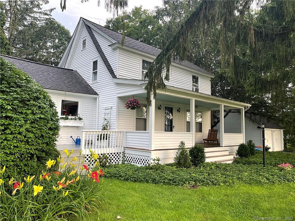 Lots of character and charm in this lovingly cared for New England cape! Warm, inviting and sunny this home is located very close to the University of Connecticut. Newer eat in custom kitchen with marble counters. Beautiful oak floors throughout. First floor bedroom/office, 2 fireplaces and a walkup attic. Lower level has 2 finished rooms, a 3rd full bath and an additional workshop area with approximately 297+ square feet of additional finished but unheated space with windows and a second fireplace. Enjoy beautiful views and sunsets from the open porch. Private side deck. Open flat yard with mature plantings. Detached 2 car garage with spacious garden shed. Minutes to UCONN, Storrs Downtown, EOSmith High School, Mansfield Community Center, medical offices, restaurants and hikimg trails. This special home is ready to just move in! Very convenient location.
