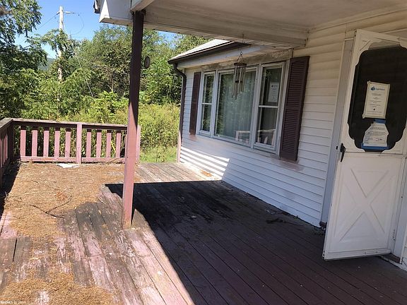Country setting on 2 gentle, rolling acres. Possible 3 bedrooms, but can only be accessed from the outside patio or through another bedroom. There is a sitting room off the front bedroom. Large laundry room and eat in kitchen. A patio in back can be accessed from the laundry room. A covered front porch, tall crawl space, heating could be oil since there appears to be underground oil tanks. Several outbuildings including 2 car detached garage. The house does need work. Utilities are not on. Sold as-is. Buyers need to verify schools.