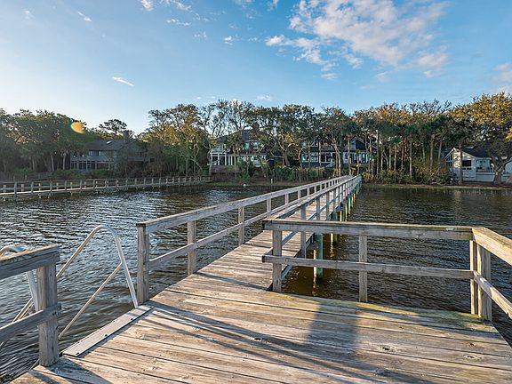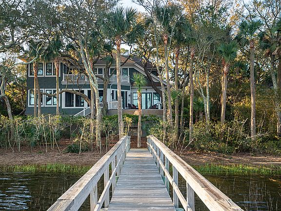 Lying on the wide blue waters of the Kiawah River, the home at 491 Old Dock Road features its own private dock and heated infinity pool along with the stunning views. Designed by the acclaimed Camens Architectural Group, whose work has been featured in publications ranging from the New York Times to International Property & Travel magazine, and constructed with careful attention to detail by the award-winning Buffington Homes, the home impresses inside and out. Outside, a curving drive, shingle exterior, and wooden-ceilinged front porch welcome guests. Inside, an open floor plan awaits. Step inside the sunny two-story foyer with its gorgeously stained hardwood flooring and lovely white trim--which both extend throughout the living areas--and straight ahead the living room's wall of windows and glass doors catches the eye, showcasing the water views. The living room is spacious, easily seating seven, with a white coffered ceiling, gas fireplace flanked by white custom cabinetry, and glass doors leading to the home's wide screened porch with its wooden ceiling. There, an outdoor dining table and chairs offer seating for ten, and a door leads to the pool deck, shaded by palmetto trees and magnificent live oaks. Return to the living room, which opens to a beautifully done kitchen with top-tier appliances including a Wolf® gas cooktop, double oven, and hood, Bosch® dishwasher, and large stainless steel GE Café® refrigerator. Twin windows over the farmhouse sink invite light inside, the cabinetry is richly stained, and the countertops are granite. A generously sized center island has an additional prep sink and breakfast bar with extra seating for three, and a pantry offers yet more storage space. The kitchen opens into the home's dining room with its barrel-vaulted ceiling and rows of tall windows and doors on three sides showcasing the exquisite river views. Glass doors to one side lead to the screened porch. The spacious master suite is also on the main level. In the bedroom, the shimmering waters of the river extend into the distance, framed by a wall of windows and glass doors opening to the pool deck. The master bath is immaculate with an expansive frameless-glass rainshower, large soaking tub set with handheld showerhead set beneath sunny windows, and both granite-topped his-and-hers vanities and a separate makeup vanity. The pale ceramic tile flooring is lovely and cool underfoot, and there's an enormous walk-in closet with built-in drawers and shelving. Take the home's elevator or sunny staircase with its tall windows and spectacular tower roof ceiling to the second floor to step onto a wide gallery overlooking the foyer. There you'll find three spacious bedrooms, including one with windows and glass doors opening to a second-story balcony overlooking the river. With its large walk-in closet with built-in shelving, expansive frameless glass shower, soaking tub, and his-and-hers sinks, it can easily serve as a second master suite. The remaining bedrooms are no less stunning. The first offers a wall of windows and glass doors opening to the second-story balcony, and a full bath with a frameless-glass walk-in shower. The other is lined with windows streaming with sunlight on two sides, and features a bath with a windowed soaking tub and shower with built-in ledge. Both offer large walk-in closets with built-in shelving. Additional features of this fully furnished home, located near the Gary Player-designed Cougar Point golf course and within a leisurely five-minute drive of the coming world-class amenities of West Beach Village and the amenities of East Beach Village, including the Roy Barth Tennis Center, Night Heron Park and Nature Center, and five-star Sanctuary with its boutiques and eateries, include an irrigation system and impact-rated doors and windows.