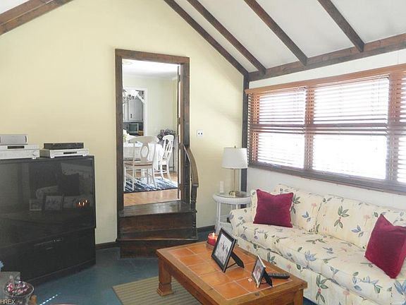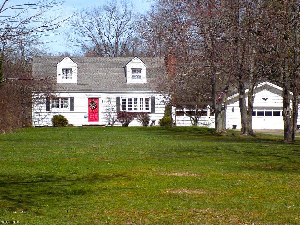 Rare find in Aurora! Charming Cape Cod set back from the road on 2.4 acres is pristinely kept and ready for you to move right in! This lovely home has a welcoming family room with lots of windows, vaulted ceiling and rustic beams. The kitchen and dining area are open to the living room with hardwood floors and cozy woodburning fireplace. Two bedrooms and a full bath on the main floor could be converted to a large master suite! Upstairs are two additional bedrooms, and full bath with dormer windows and vaulted ceilings. The unfinished lower level has recently been waterproofed and is just waiting for your finishing touches! Large deck overlooks the level back yard! So much character throughout! Don't miss this fantastic opportunity!