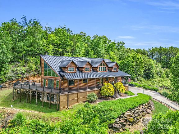 Exquisite 5200 sq ft red oak custom built log cabin (only one of two in WNC when built in 2008), crafted to perfection and impeccably maintained rests on 3.3 secluded acres atop a picturesque ridge boasts
