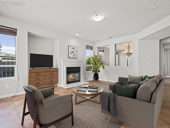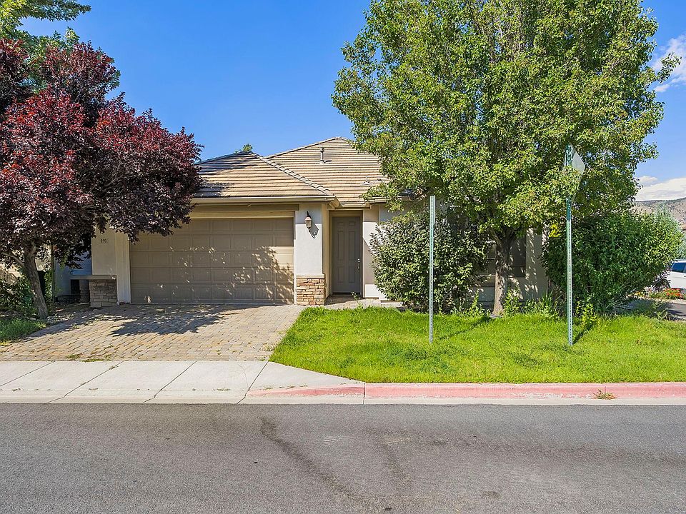 Welcome to this single-level, stunning, and exceptionally well-maintained home in the sought-after Curti Ranch neighborhood. As you step inside, you'll be greeted by the elegance of hard surface flooring, perfectly complemented by lovely grey walls throughout, giving the home a modern and inviting ambiance. With four full bedrooms and three well-appointed bathrooms, this home offers ample space for a growing family or accommodating guests. Nestled on a desirable corner lot, you'll enjoy added privacy and a sense of openness. The low maintenance backyard is perfect for those seeking a tranquil retreat without the hassle of extensive upkeep. As a bonus, you'll occasionally be treated to the sight of wild horses roaming the community, adding a touch of natural wonder to your everyday life. Convenience is at your fingertips, with the Summit Sierra Mall just a stone's throw away. Enjoy easy access to a plethora of shopping options and delectable restaurants, making your daily outings a breeze. 1.5 mi to Summit Reno Mall, an upscale lifestyle center in Reno. 2 mi to i580/395. Lake Tahoe, Virginia city and Carson City are all within 26 miles. Only a few miles from the Mount Rose Ski Resort. Zoned schools: Brown Elementary School (0.2 mi); Kendyl Depoali Middle School (2.9 mi); Damonte Ranch High School (1.5 mi). Really interested parties, please apply on Zillow to start the application process. Must have 650 credit score to apply.