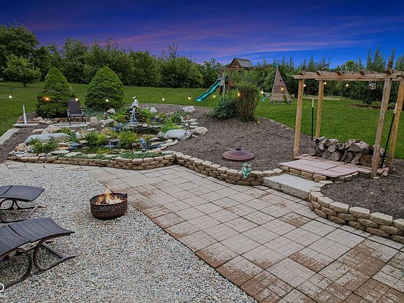 Water fountain gardenFire pitWooded trailsDouble vanityBordering a babbling creekApple orchardUpdated bathrooms