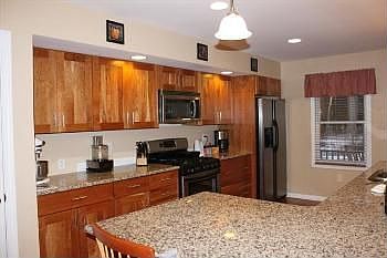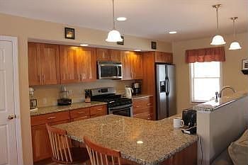Beautifully remodeled 3BR/2BA open-floor plan home in Colchester's North Harbor neighborhood; Granite counter tops, high-end Cherry flooring & cabinetry, stainless steel appliances. High-efficiency gas furnace installed 2012, home wired throughout for sound system including back patio. Newly landscaped grounds with a fenced in backyard for the pups!Living room with gas fireplace. Open floor plan allows for easy heat flow between areas and direct view of kitchen and dining room. Cherry hard-wood throughout, dark granite in kitchen. Mud-room entrance off of 2 car garage.Master Suite includes walk-in closet and bathroom with 2 person Jacuzzi tub (wired for TV) and stand-up shower, granite vanity and tile flooring; Back patio access from master bedroom. Two standard guest bedrooms and 2nd full bath updated with granite and tile. Enormous family/movie & game room area with gas stove lines in-place. Recessed lights, wired in all areas for cable. Laundry/craft area off exercise room