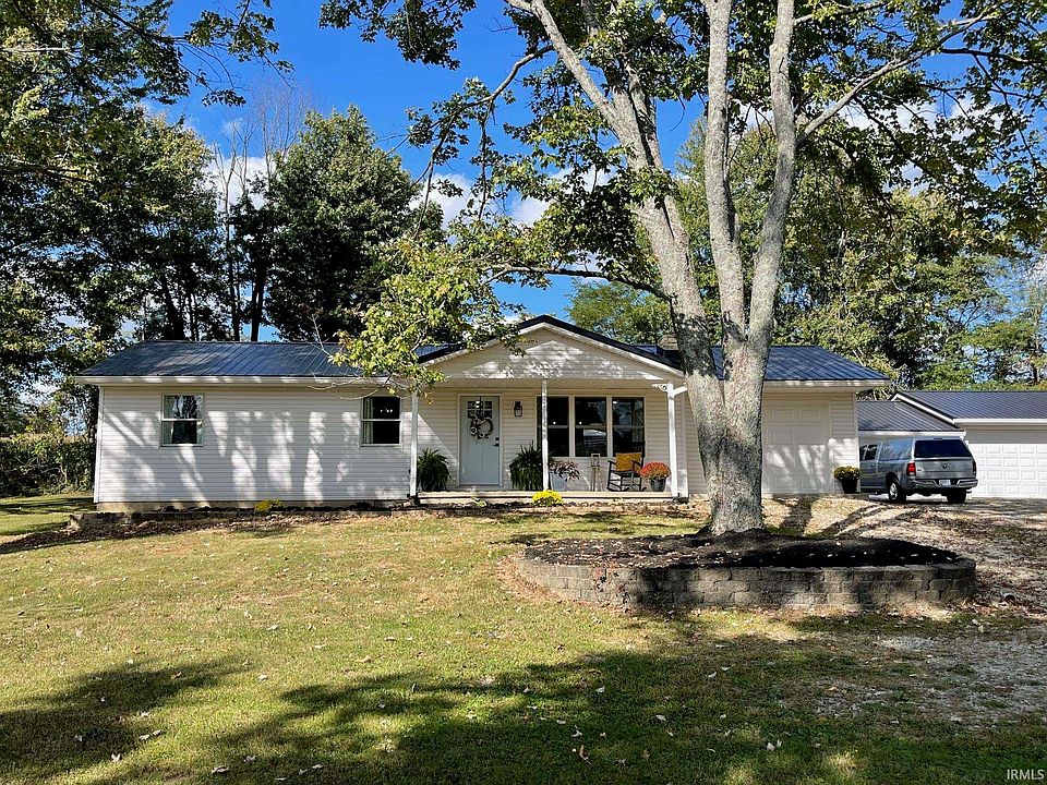 Nicely updated ranch home on 2 acres!! This home has a long list of updates and news including, wiring, plumbing, roof, HVAC, total kitchen, both full baths, flooring, paint, light fixtures and landscaping. Truly a "move in ready" home. The new primary en-suite is a retreat with a claw foot tub and stand up shower. Custom closet systems are in all 3 bedrooms. The open floor plan allows for great entertaining flow and the large island is the best hang out spot! Samsung black stainless appliances, quartz counters and ample storage are great! The laundry is tucked away but is a gem of a utility room with on demand water heater. There is a one car attached garage which could easily be used for something different because you have a 3 car detached garage!! Much to love about this special home.