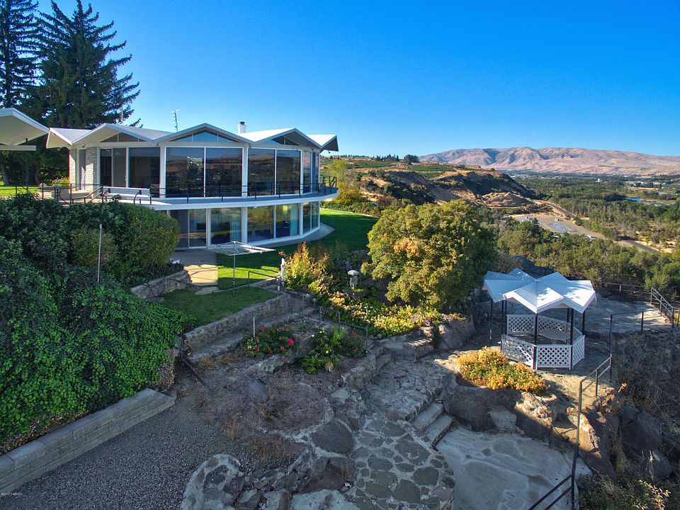 Owner designed one owner home with an amazing view fully captured by walls of windows in living room, master bedroom, family room and office. Peaceful setting on over 12 acres overlooking the Naches River. Home features formal living and dining rooms designed for entertaining, spacious Master bedroom and bathroom. Lower level, accessed by elevator, has a game/family room, large office, bedroom, bathroom and abundant storage. Fenced and gated grounds with 3 car garage with shop area, additional shop building and indoor pool. The pool is huge and there is a bathroom and sauna in the pool room. This is a one of a kind home.Taxes for 2nd parcel $47.00.