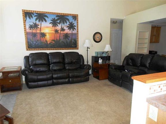 Lovely home on a beautiful lot with a stunning setting. In addition to the serene lagoon view from the rear of the home, the great thing about this lovely wooded setting is that there is a large vacant lot next to this property that is currently owned and maintained by the association, giving this home greater privacy. Family friendly split floor plan with separate living room and family room off the kitchen with a wood burning fireplace. There is a small nook off the family room that makes an ideal office space. Lots of built-ins, vaulted ceilings, and a pool area that is done in brick pavers. No CDD fees and a yearly HOA maintenance fee of only $370.00. This home has been well cared for and maintained.