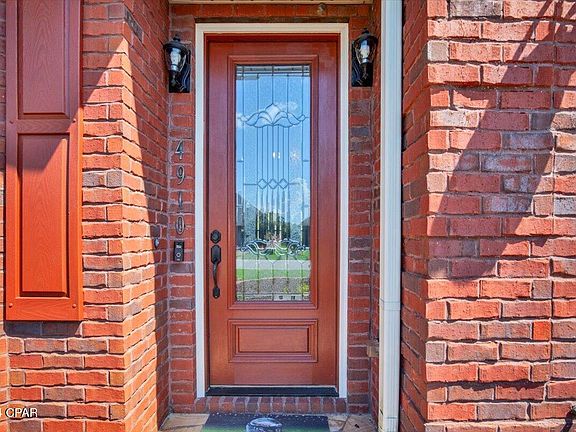 Beautiful Cedar Branch POOL home in Northeast Panama City. A classic neighborhood on a quiet cul-de-sac. Three bedroom, two and a half bath, two-story brick home with approximately 2,450 sq. ft. Gunite inground swimming pool and hot tub with outdoor kitchen surrounded by pavers. The perfect place for family and entertaining! Backyard is completely privacy-fenced. You enter the home through a decorative lead glass front door, into a beautiful classic foyer sitting room. Downstairs has a half bath and desk space with open concept kitchen and dining room. Downstairs floors are porcelain tile. 10' ceilings. All brown cherry cabinetry in spacious kitchen with center island breakfast bar. The top cabinets are oversized (42''). Gorgeous granite counter tops continue up to the bottom of the cabinets.