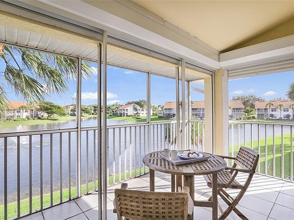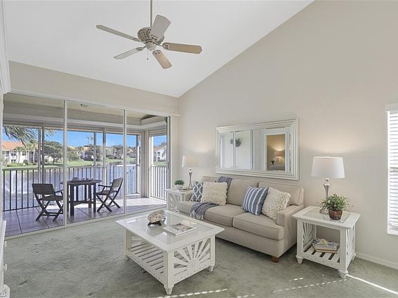 C.212 - Great morning exposure with amazing long lake view from this freshly painted condo featuring two spacious bedrooms and a den. Master boasts a generous walk in closet and the en suite bath is ideal with dual sinks and large walk in shower. You have 2 outdoor spaces for your enjoyment, one open lanai to appreciate a starlit night off the breakfast nook and the screen enclosed lanai to gaze over that beautiful lake with fountain with the added bonus of electric storm shutter for protection! The covered parking space is a super benefit and the in unit laundry room is a bonus. Simply steps to the local resident pool making this location so convenient! Carlton Lakes offers 55 acres of preserves, walking and bike paths throughout the community, lakes that are stocked for catch and release fishing, a master club house with lap pool, bocce and tennis courts. Ideally located in N Naples, just a few miles to the sandy beaches of the Gulf of Mexico, the airport and lots of shopping and restaurant destinations. Enjoy walkability from this unit to local grocery stores, coffee shops and more. This unit comes with a 1 year home warranty for the new buyer at closing.