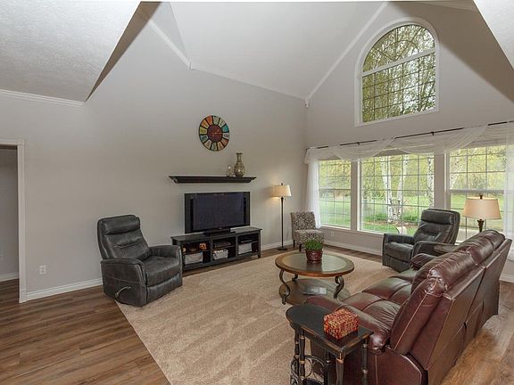 Captivating home on 7+ acres with flowing stream, cozy kitchen nook, formal dining for special occasions. Remodeled in 2017 for open concept living, new LVP floors, new kitchen appliances, gas range, main floor master BR, den, & laundry. Upstairs has two large BR & a bath. New roof on main house, 4-zone climate control GFA/CAC, 30'x40' shop with zero-step in-law home with private yard. Wired for generator. Bonus room over garage. Fenced. Covered dog run. Garden sheds. Sprinkler system. Basketball. More!