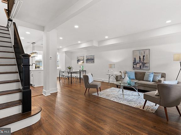 Welcome to this beautifully renovated Wardman Style row home in Petworth with one of the largest lots in the area with off-street parking. An inviting front porch is the perfect place to chat with friends and neighbors. As you enter the home, you will love the open concept with the living, dining, kitchen, powder room, recessed lighting, hardwood floors, and 9 ft ceilings. The kitchen is a chef/entertainer's dream with 42" glass soft-close cabinets, a large kitchen island, stainless steel appliances, quartz counters, gas cooking, and access to the large private deck, yard, and private parking. There is a bonus den/sitting area on the main level, as well. The upper floor boasts an owner's suite with private office space, an enormous 7 ft wide closet, a ceiling fan, and a gorgeous bathroom with dual vanities. There are two additional large bedrooms with a beautifully renovated hallway bathroom with a tub. The fully finished lower level is the perfect in-law-suite area with a bedroom, full bathroom, large rec space, kitchen, and private entrance. The property sits on a large new fully-fenced private backyard with a large deck and parking perfect for entertaining. The property features a new roof, new windows, a new HVAC system, a new water heater, and a new electrical panel. Close to Rock Creek Park, Rt 29, Georgia Ave/Petworth Metro, restaurants of Upshur street, easy access to all conveniences along Georgia Ave, upcoming Walter Reed development & much more!
