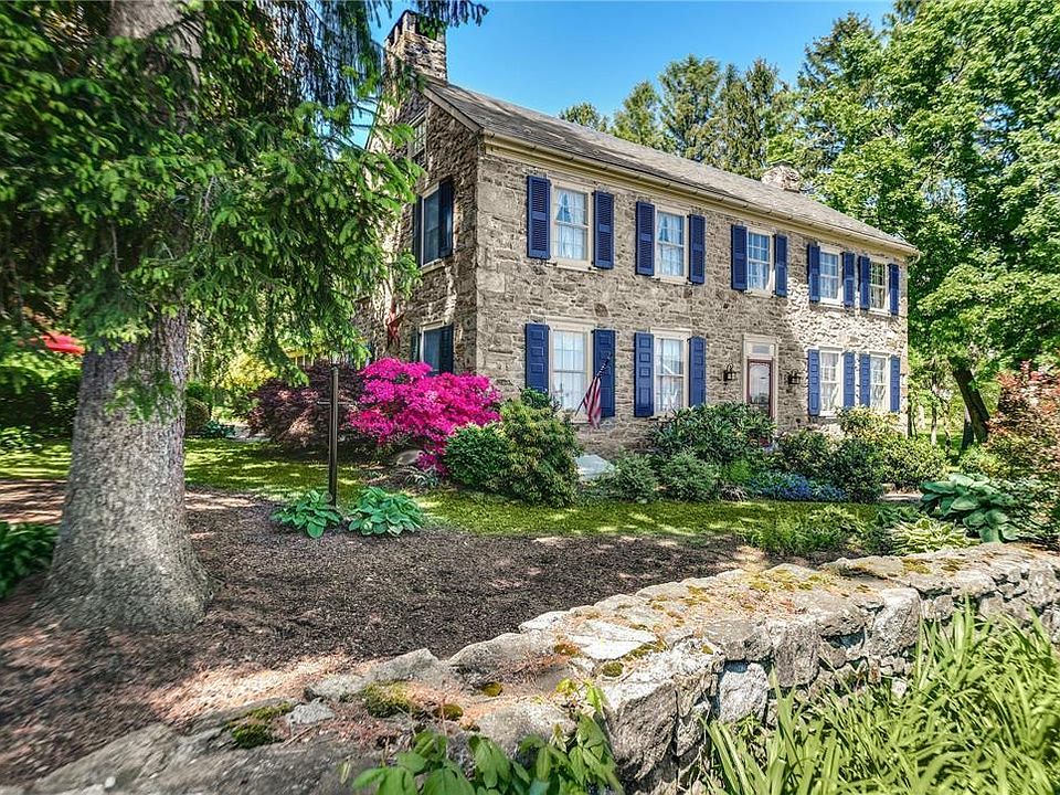 Own a piece of history in this stunning stone home built circa 1837. Antique touches and colonial-era inspired colors mingle w/modern amenities. Recent updates include a 2020 slate roof & 2017 equipment building. Inside, random width oak floors are complemented by deep-silled windows & exposed wood beams. Dining & living areas include a fireplace, wood stove, & built-ins for storage. The generously-sized kitchen offers tile countertops, 2 ovens, & a butcher block island. Adjacent, the sunroom looks out over the patio. Upstairs, the primary bedroom offers a wood-burning fireplace, walk-in closet, & ensuite bath. 3 more bedrooms, a sitting room, & hall bath complete this level. The walk-up attic offers lots of space for storage. Outside, the meticulously landscaped grounds are a showcase for specimen plantings & old growth trees. The large bank barn has an office, work space, 1/2 bath & storage on the ground level, with an open upper level.