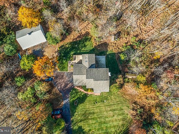 If you are searching for privacy with a beautiful wooded view then this may be your new home. This custom built home at the end of a cul-de-sac with a long private drive is a must see. Living room with French doors can be a possible home office. A formal dining room leads into the kitchen and breakfast room. The oversized den/family room with fireplace has large windows to enjoy the expanded view. Warm up in front of the sunroom wood stove surrounded by windows and views of the open space beyond. French doors open out to the newer deck. This is not a cookie cutter layout. For convenience there is a large mudroom/laundry as you enter from the attached garage. The second level offers a primary suite and 3 additional bedrooms with a hall bath. The unfinished basement has loads of possibilities with an outside entrance and an additional storage garage or garden shed with access to the back yard. The detached garage can accommodate 5 cars and offers many possible uses. This custom built home has solid bones with newer roof and HVAC, with a few updates this can be your dream home in a dream location surrounded by mostly township land.