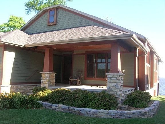New craftsman style bungalow 2007 Parade home, lake views from almost all rms including the master bath shower. Beautiful gourmet kitchen with custom cabinets, silestone countertops & built in Viking appliances. 3 seasons rm to watch sunrises & sunsets over the lake. This home is loaded with many high quality features, too many to mention. On a one of a kind lake property.
