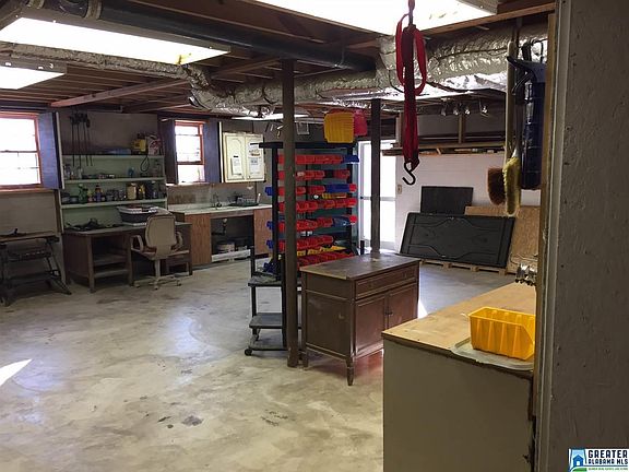 So much space in this Saks rancher. You'll love the open plan remodeled kitchen overlooking an attractive den. Built in cabinets and built in desk would be a perfect place for student to study. Modern look gas fireplace. Off the large kitchen is a bright and cheery sun room. Plus you have a formal living room AND formal dining. Laminate flooring with just carpet in the bedrooms. The yard is huge - and is set up for RV parking or boat parking. The home has a fenced yard on the whole property and also has a storage building. There is an unfinished basement that is ready for your workshop. With cement flooring, and plenty of space, this is a dream come true for a woodworker or crafter. Gas heat and Electric air replaced in 2007. Water heater replaced 2016. Metal roof installed in 2011 and additional blown in insulation in the attic which has resulted in decreased heating and cooling costs. Plus gutter guards installed so no cleaning out gutters! This home has been very well taken care of