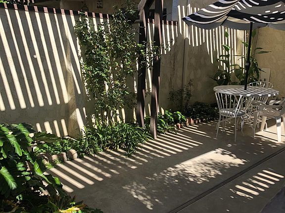 This VERY quiet condo has a beautiful private patio its great for someone who likes to garden and have small gatherings with friends. It has 2 bedrooms and a walk through bathroom upstairs with lots of closet space and linen storage. Half bath down stairs. Walnut flooring, carpeted stairs, fireplace, security screen door, kitchen has new appliances dishwasher, microwave, electric stove. Large dinning area with built in hutch for easy entertainment. It has a one car garage with washer and dryer hook ups. Owner pays for water and trash. Tenant pays for gas and electric.